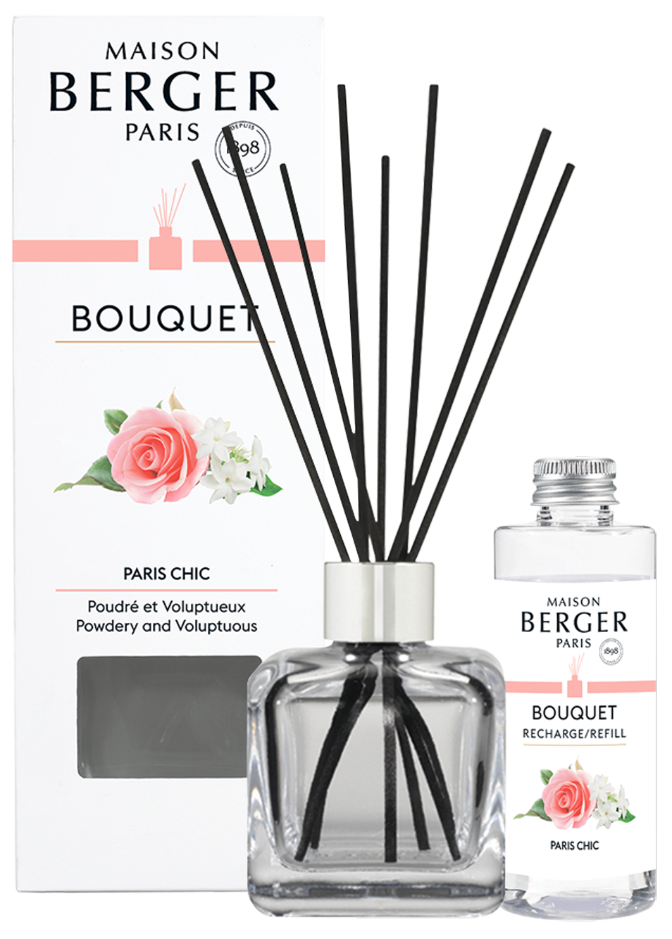 Аромат "Парижский шик" от бренда Maison Berger Paris — это нежный цветочный аромат, вечное воплощение французского мастерства. Он открывается освежающим букетом цитрусовых, а затем переходит в классический розовый сад, где великолепная болгарская роза соседствует с элегантностью ириса и искренностью фиалки. Абсолютно современный, экзотический вкус личи, усиленный солнечным ароматом персика, подчеркивается пудровой мягкостью мускуса. Прогулка среди роз сада Тюильри!