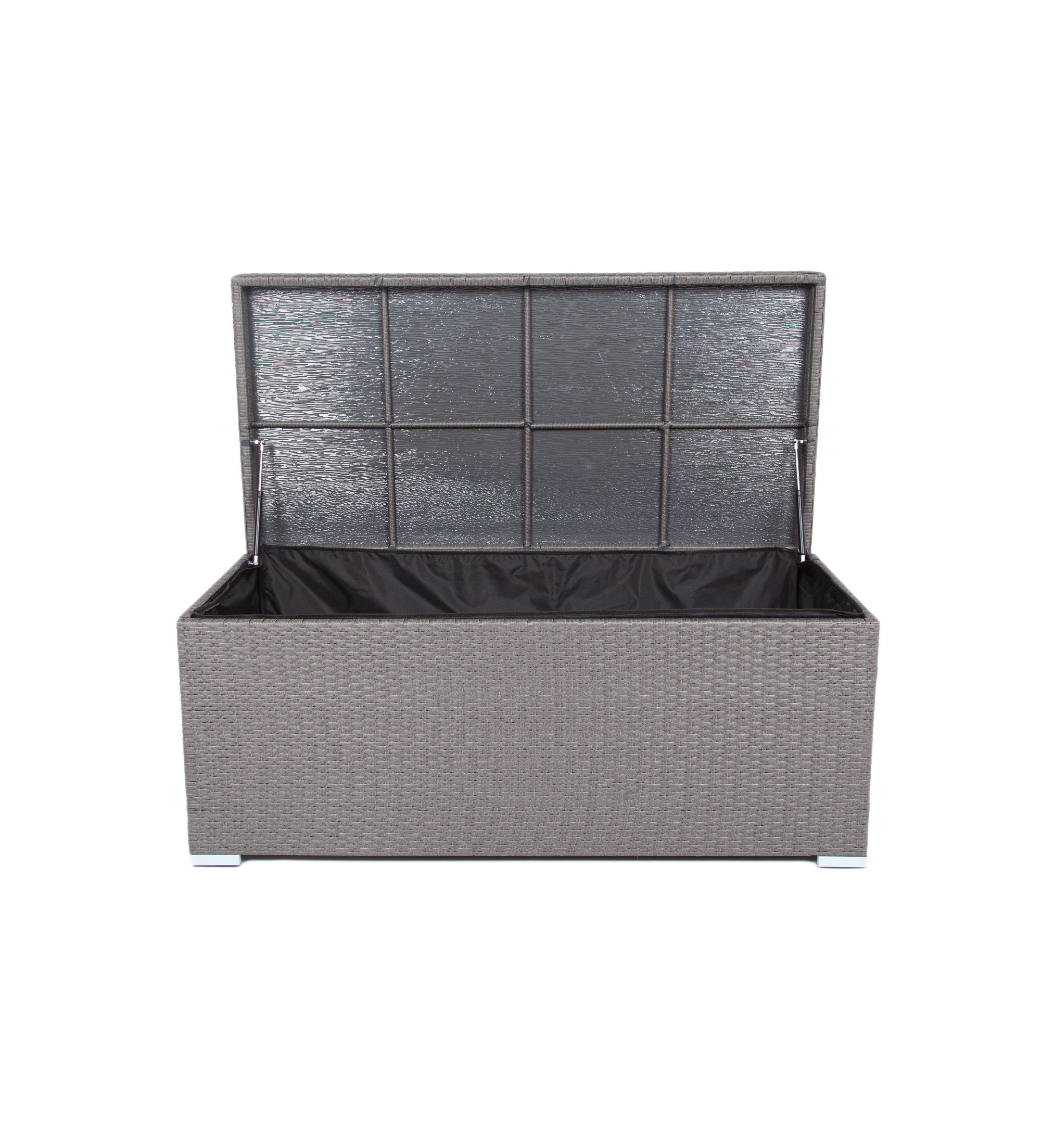 «Порту» вместительный сундук из плоского искусственного ротанга в цвете "графит". В основе - алюминиевый каркас.