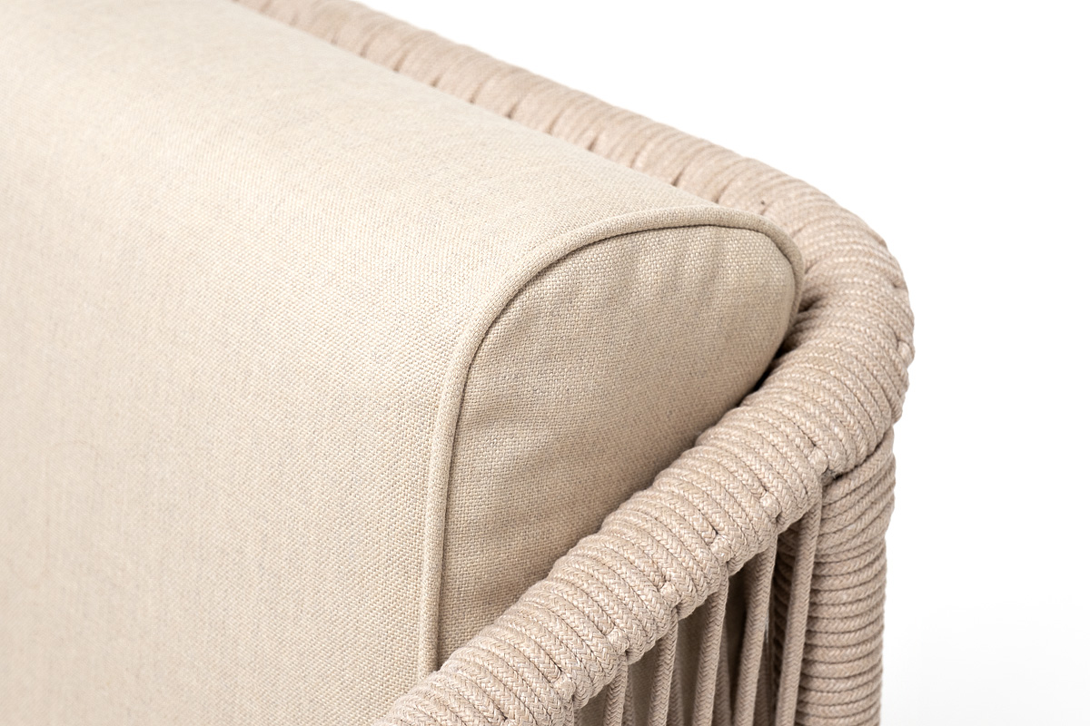 Приятное дополнение − подушки со съёмными чехлами аналогичного бежевого оттенка из влагоотталкивающей ткани, устойчивой к ультрафиолетовым лучам и неблагоприятным атмосферным воздействиям.