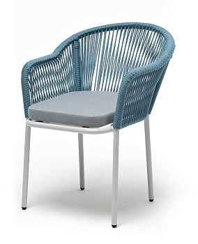 "Лион" стул плетеный из роупа, каркас из стали светло-серый (RAL7035) муар, роуп бирюзовый круглый, ткань светло-серая